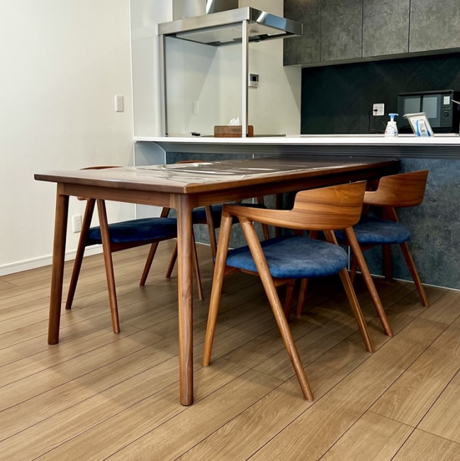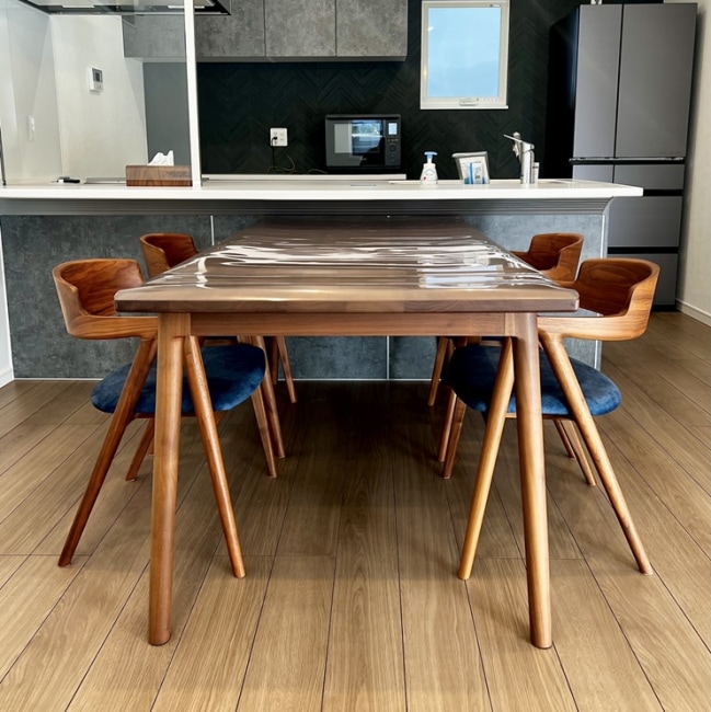 Walnut無垢材を使った、綺麗なデザイン性のダイニングテーブルを