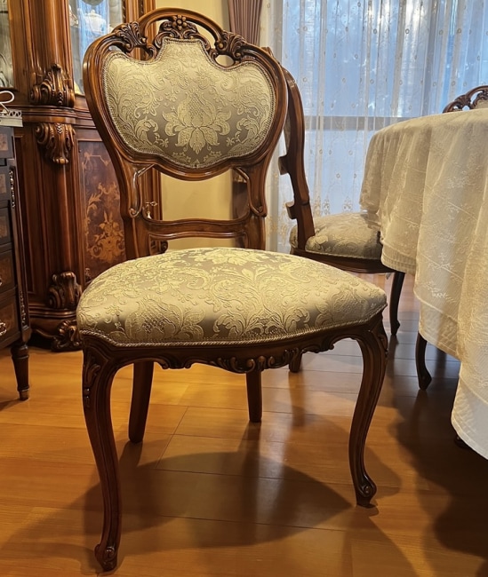お客様も、この張り替えられた椅子の完成度